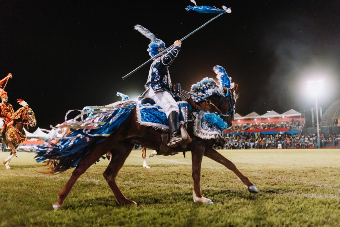 As Cavalhadas são uma representação tradicional dos torneios medievais que recriam as batalhas entre cristãos (vestidos de azul) e mouros (trajados de vermelho). A manifestação é inspirada no livro “Carlos Magno e Os Doze Pares da França”, quando o guerreiro cristão batalhou contra os sarracenos, de religião islâmica.