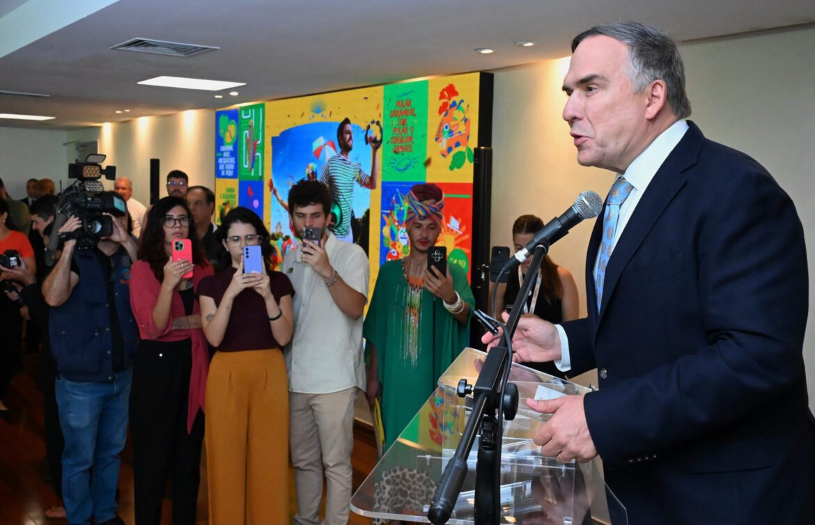O prefeito Sandro Mabel participou, nesta quarta-feira (22/1), do lançamento do Folia Goiás, ao lado do governador Ronaldo Caiado e da coordenadora do Goiás Social, primeira-dama Gracinha Caiado. Durante o evento, realizado no Palácio das Esmeraldas, o Governo de Goiás apresentou um pacote de ações de apoio ao Pré-Carnaval e Carnaval 2025, e o site Ocupa Goiás, com informações sobre calendário de eventos.