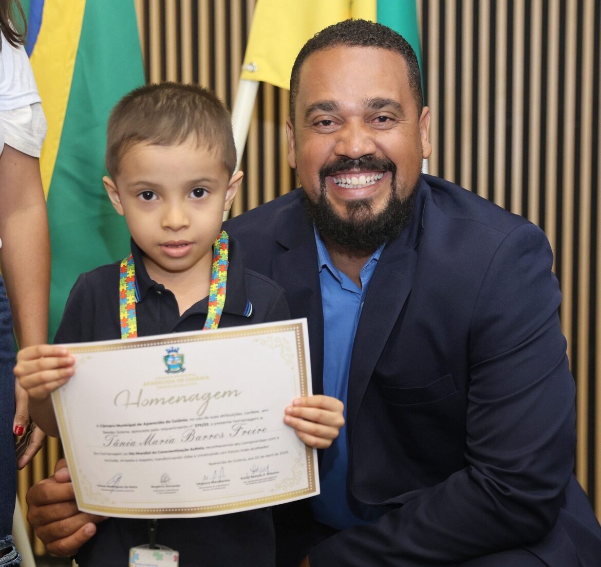 A Câmara Municipal de Aparecida de Goiânia realizou uma Sessão Solene em homenagem ao Dia Mundial da Conscientização do Autismo. A iniciativa foi proposta pelo 1º vice-presidente da Casa, vereador Rogério Almeida, e reuniu autoridades, representantes de instituições e familiares de pessoas com Transtorno do Espectro Autista (TEA) para debater a inclusão, o cuidado e o fortalecimento de políticas públicas voltadas ao tema.
